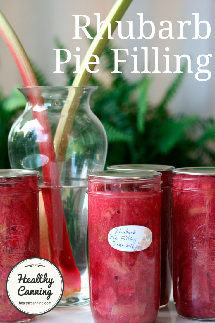 - Washington State University Extension Service’s directions for adaptation of the USDA’s Peach Pie Filling into Rhubarb [3]Washington State University Chelan / Douglas / Okanogan County Extension. Let’s Preserve Fruit Pie Fillings. September 2010. Page 5.